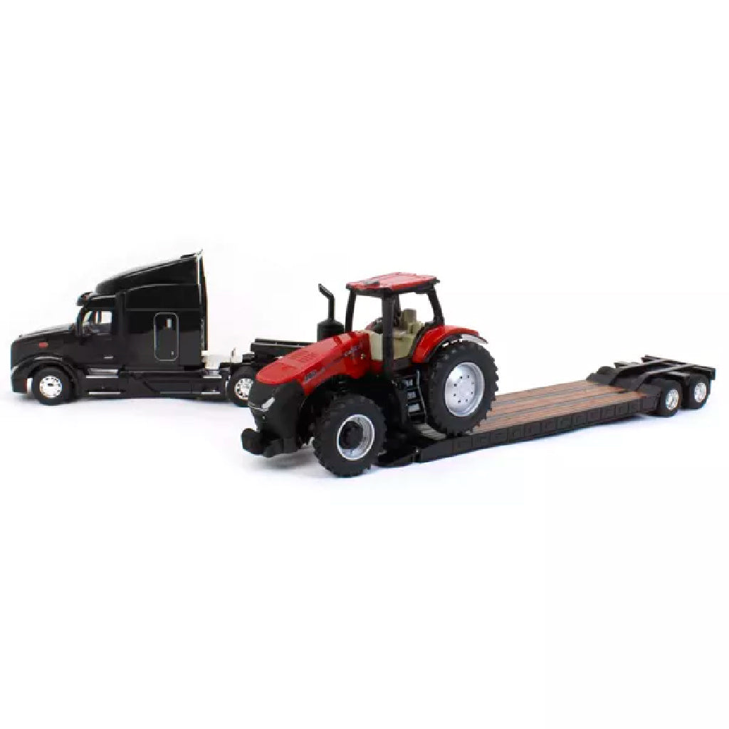 Líder en juguetes agrícolas durante más de 60 años. Este set incluye un tractor Case IH AFS Connect Magnum 380 a escala 1/32 sobre un remolque de plataforma baja, remolcado por un semirremolque Peterbilt Modelo 579 a escala 1/32. El remolque de plataforma baja cuenta con un enganche delantero fácilmente desmontable, lo que facilita la carga y descarga del tractor Case IH. Este set está recomendado para niños mayores de 3 años y es ideal para jugar.