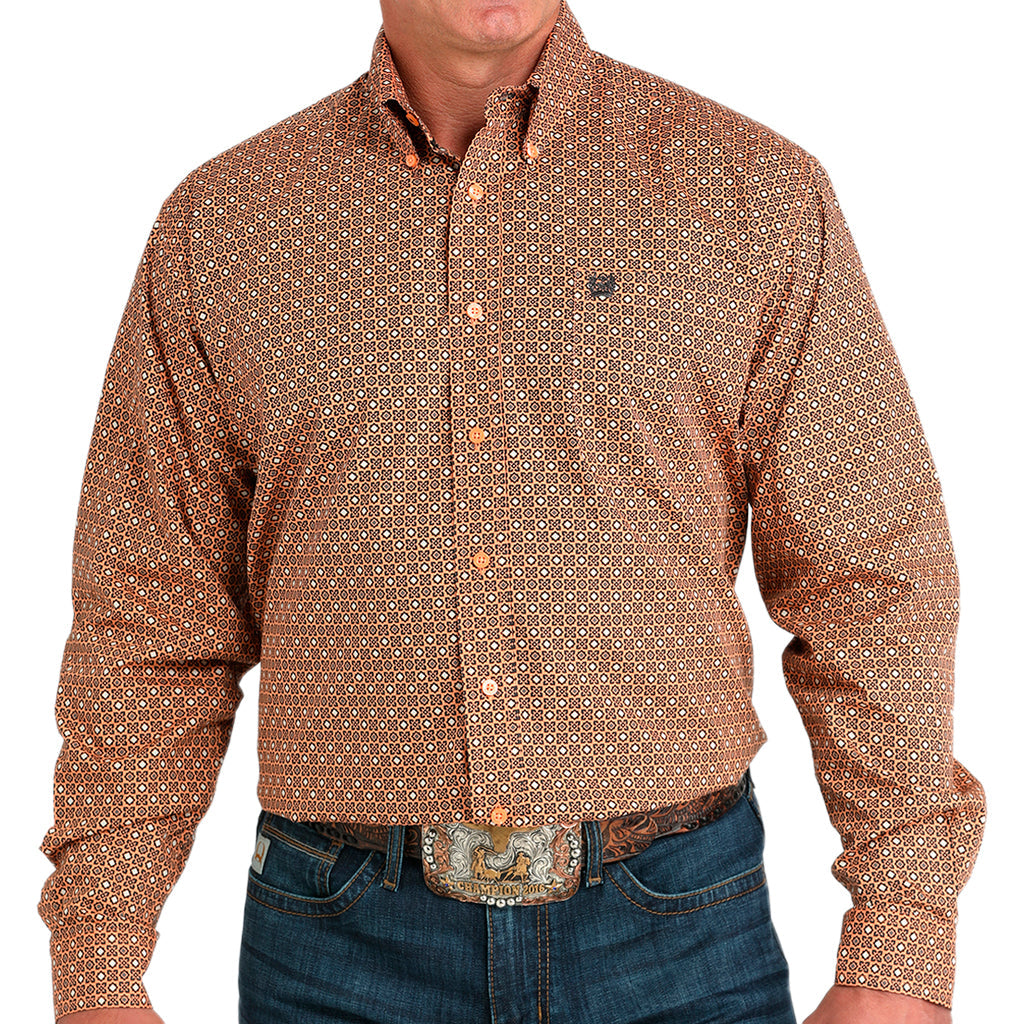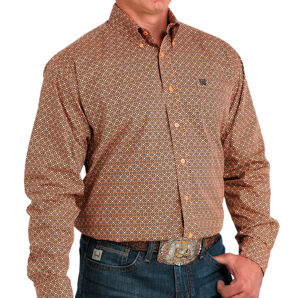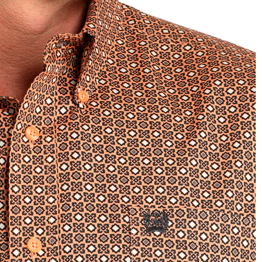 Renueva tu armario con esta moderna camisa de algodón liso con estampado geométrico coral, confeccionada por CINCH. Esta elegante camisa combina a la perfección con vaqueros azules o caquis y cuenta con un bolsillo delantero izquierdo abierto, logo bordado y botones coral