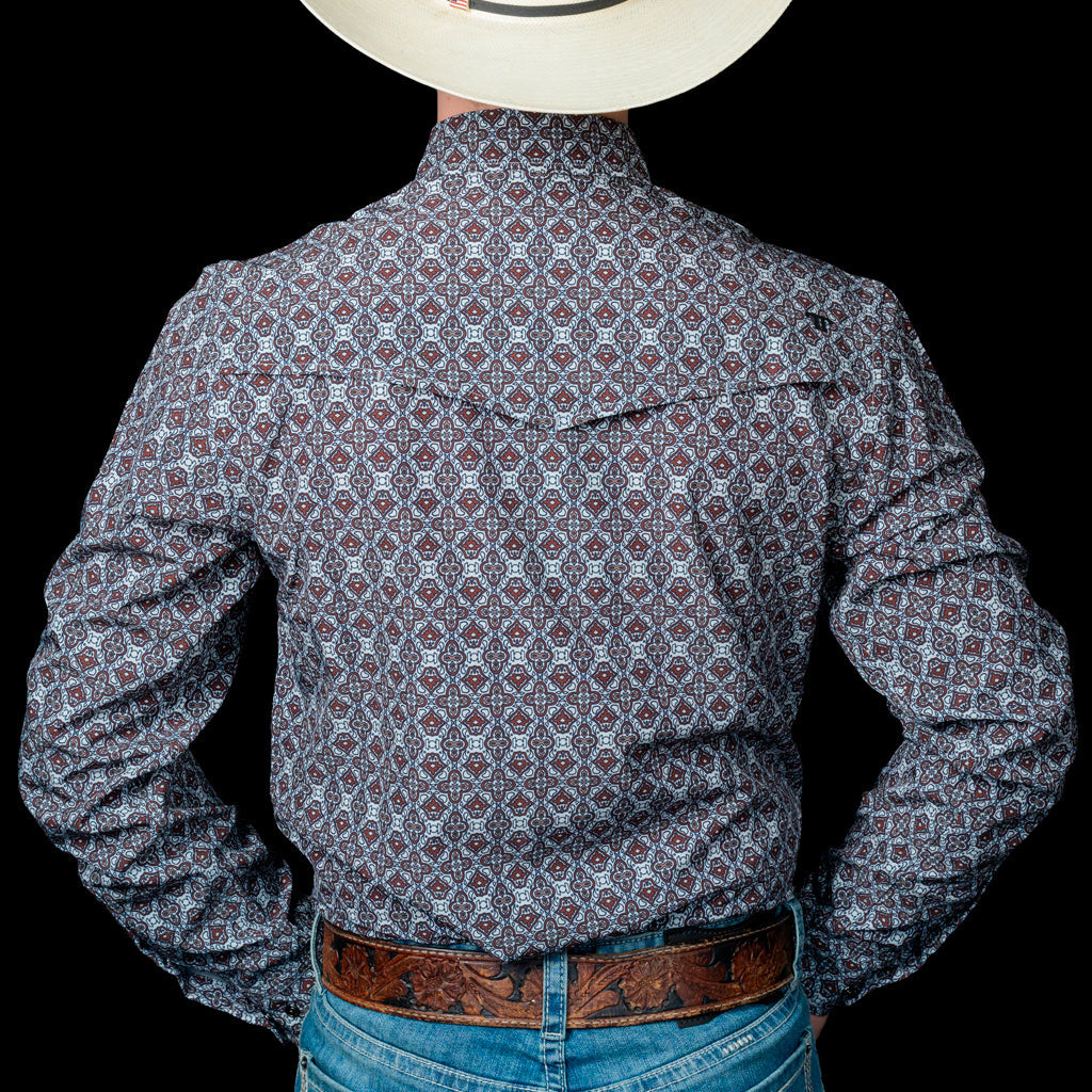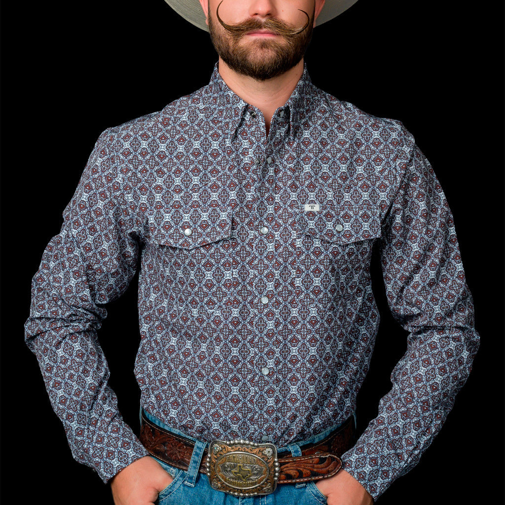 Eleva tu estilo occidental con nuestra Camisa de Manga Larga Ferrell en Color Guinda con Patrón de Diamantes, Esta prenda combina la artesanía tradicional con un diseño contemporáneo, perfecto para el hombre que valora el porte y la distinción.