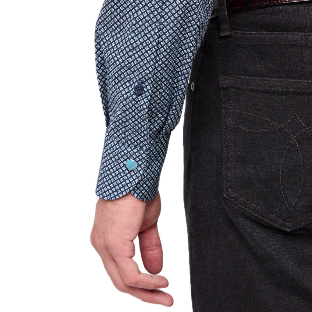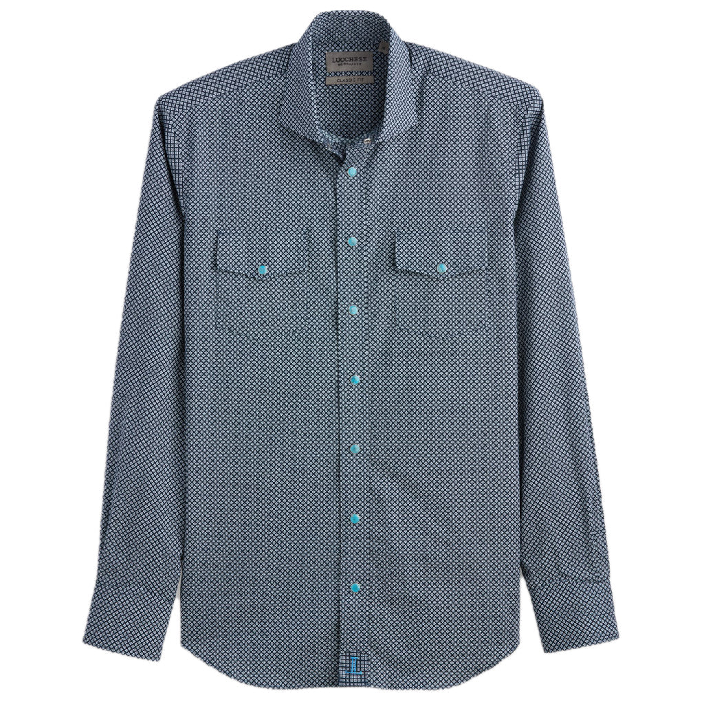 Bautizada con el nombre de la ciudad texana donde se originó Lucchese, la San Antonio es una camisa abotonada atemporal diseñada con un bolsillo en el pecho y puños acampanados. Diseñada para ser versátil, combina tradición y refinamiento. Su corte clásico ofrece una comodidad equilibrada en un perfil atemporal. Esta camisa prioriza la comodidad diaria, con cintura recta, mangas estándar y un corte moderado en el pecho. Ideal para personas de complexión media que valoran la tradición y la comodidad en sus camisas de vestir
