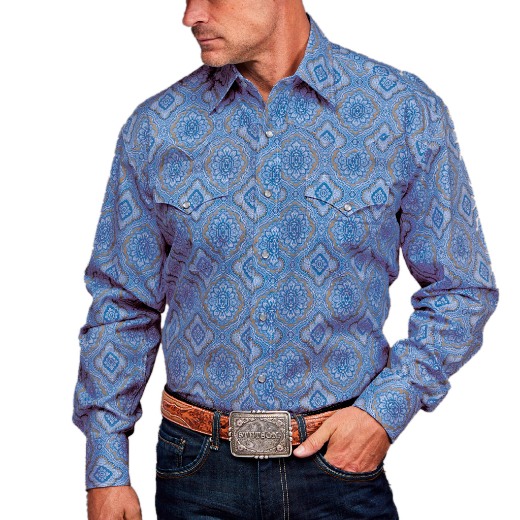 • Camisa Stetson color azul marino con estampado occidental