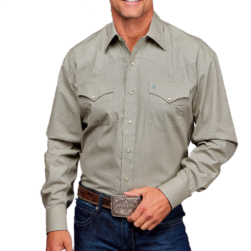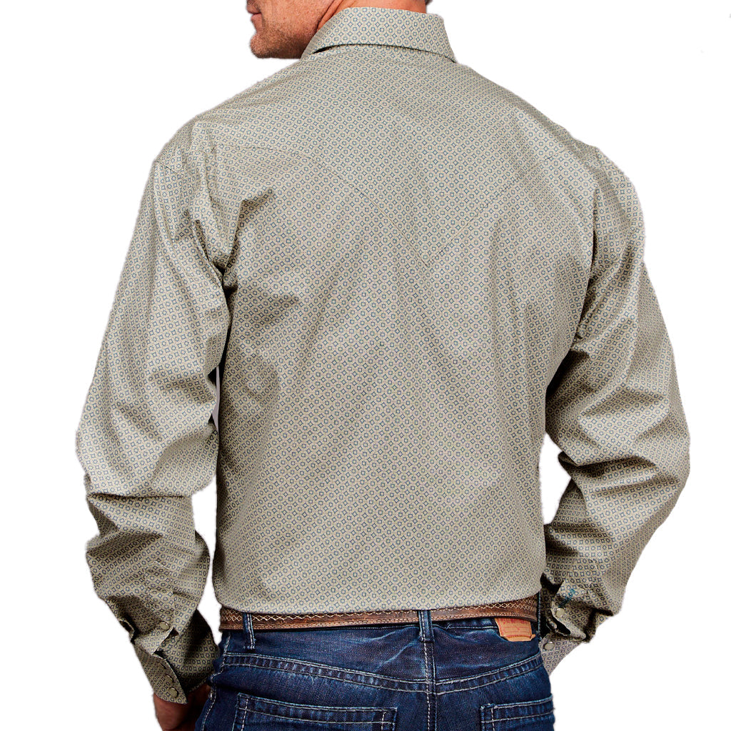 • Camisa Stetson color arena con estampado rombos y cuadros en azul