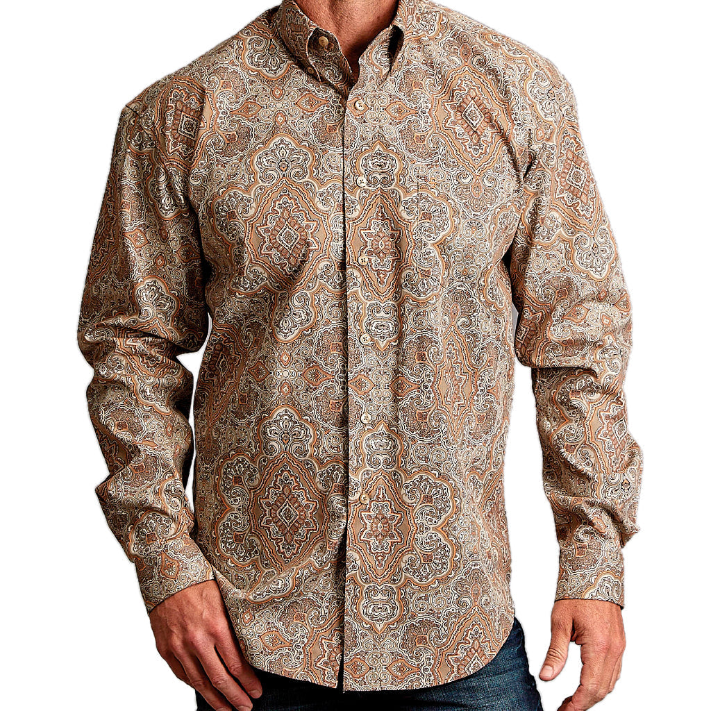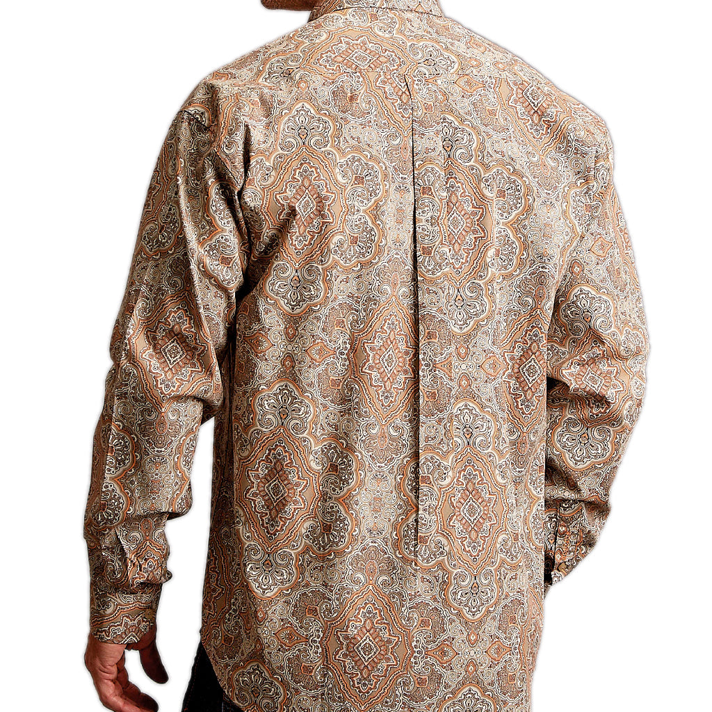 • Camisa Stetson color beige y cafe con estampado occidental