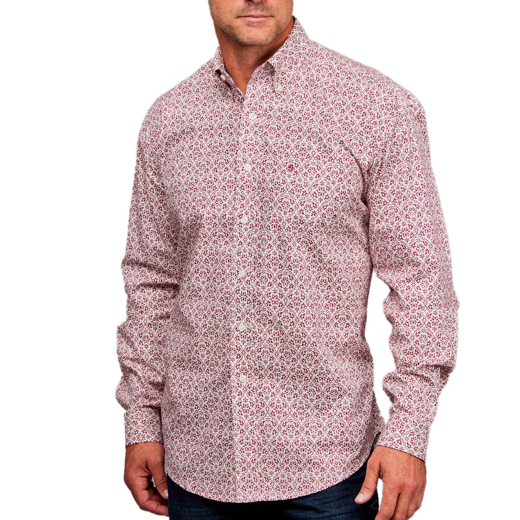 • Camisa Stetson color blanco con estampado color tinto/Guinda