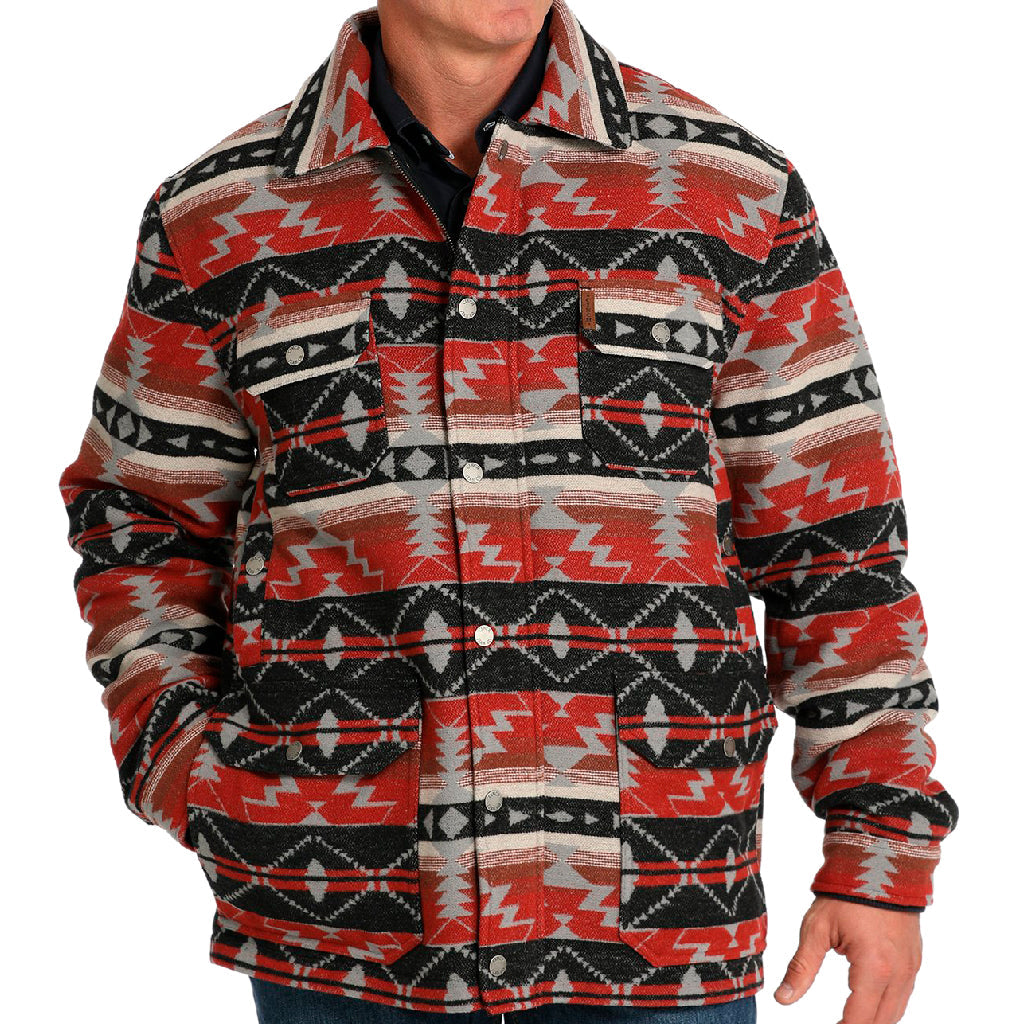 Si estás buscando un abrigo fronterizo con estilo esta temporada para seguir la tendencia de la moda del Oeste, CINCH es lo que buscas. Nuestro abrigo fronterizo de sarga de lana y poliéster en color burdeos eleva el medidor de estilo con un estampado del Oeste en toda su extensión y detalles acertados, como forro de poliéster, punto acanalado doble y puños con botones a presión, solapa cortavientos, etiqueta de cuero con el logotipo y acabado resistente al agua duradero