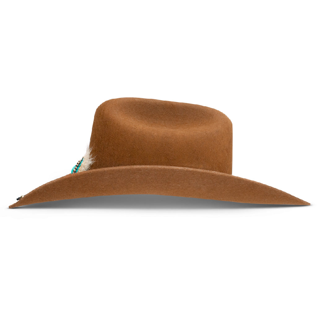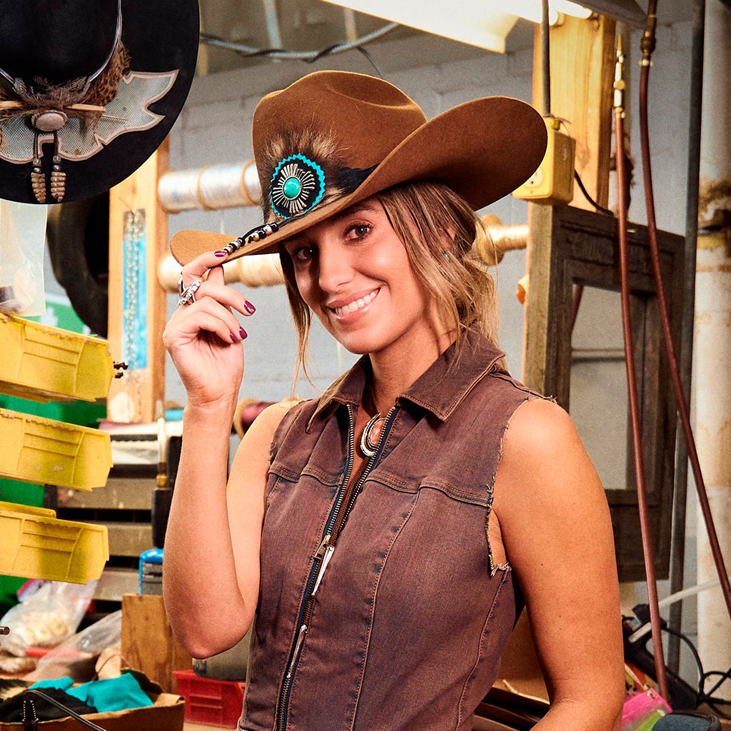 Inspirado en la energía imperdible de las giras con entradas agotadas de Lainey Wilson, el sombrero Country With A Flare en negro es el centro de atención. Un concho central en tonos plata y turquesa sobre fondo negro, con recortes de cuero, adorna la corona. El concho está acentuado por una cinta de plumas, borlas de cuentas y un toque de plumaje en tonos naturales. Este sombrero de fieltro firme tiene un ala de 11,5 cm y una banda de sudor Dri-Lex. Consíguelo en negro para cautivar al público. El Country With A Flare forma parte de nuestra colección Charlie 1 Horse de Lainey Wilson.