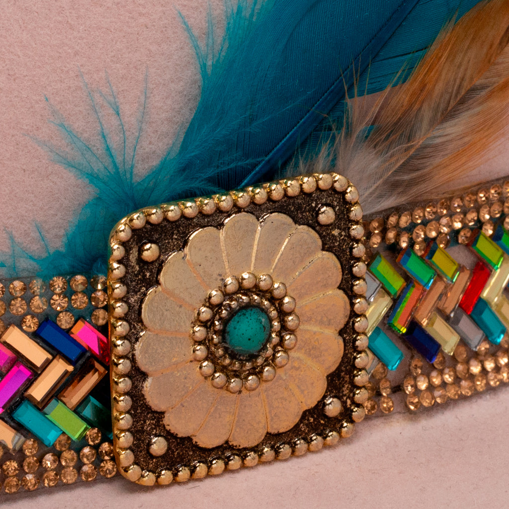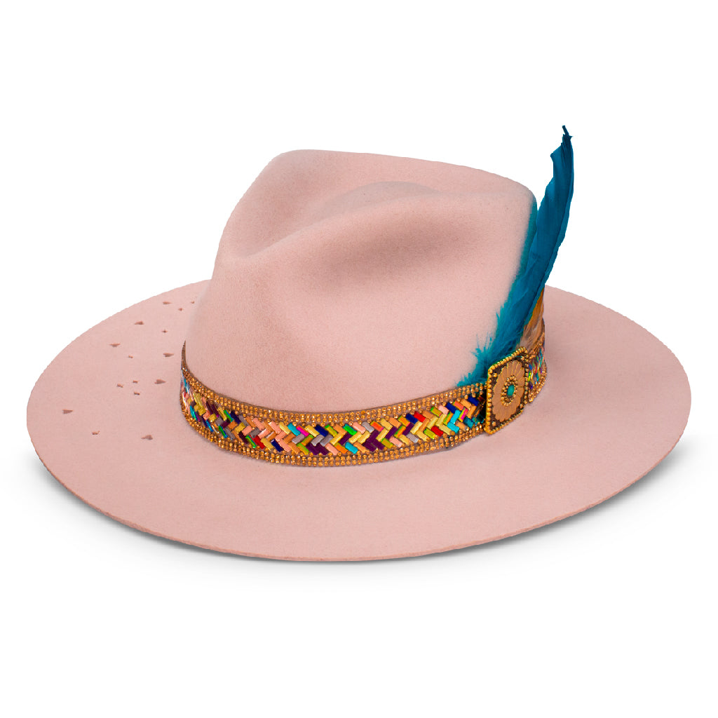 "Un poco de Mississippi, un montón de piedras rodantes", el sombrero Hillbilly Hippie en rosa empolvado es Lainey Wilson de pies a cabeza. Parte de nuestra colección Charlie 1 Horse by Lainey Wilson, este vibrante sombrero rosa empolvado tiene una ala plana de 7,6 cm y una cinta hippie-alucinante con múltiples piedras y una hebilla cuadrada de medallón. Está confeccionado en fieltro firme con una banda de sudor de tela Dri-Lex. El diseño de corazón recortado en el ala y la pluma azul brillante en la cinta le dan al Hillbilly Hippie un toque extra salvaje y extra libre.