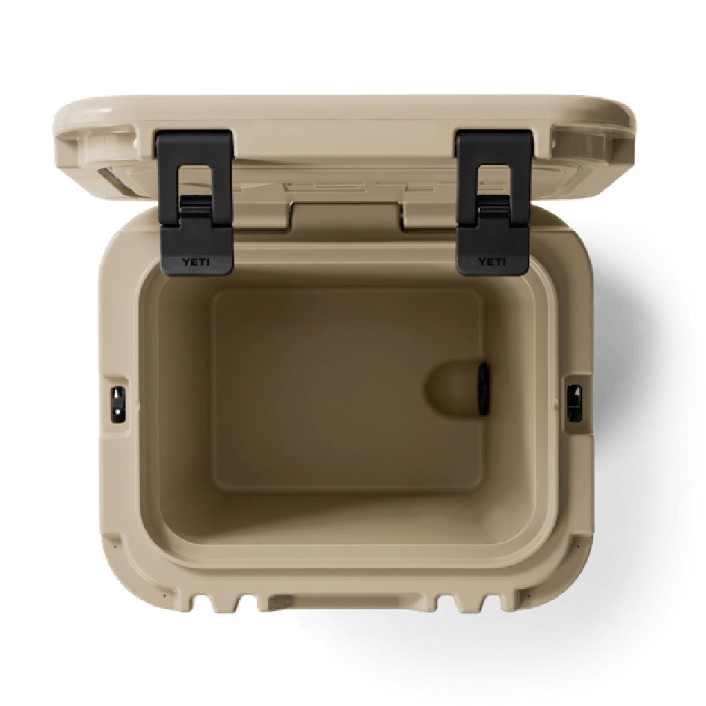 El Roadie 24 Hard Cooler es una nueva versión de un favorito probado de YETI. Es un 10% más ligero, tiene un 20% más e incluso tiene un rendimiento térmico un 30% mejor que su legendario predecesor. Además, lo construimos lo suficientemente alto como para acomodar botellas críticas de vino, pero lo suficientemente delgado como para apretarlo detrás del asiento del conductor o del pasajero de un automóvil. Ahora eso es lo que llamamos un compañero de viaje. Y bueno, este tipo es compatible con nuestro kit de amarre, lo que significa que también puede transportar este refrigerador en su bote, camioneta o remolque, no hay problema