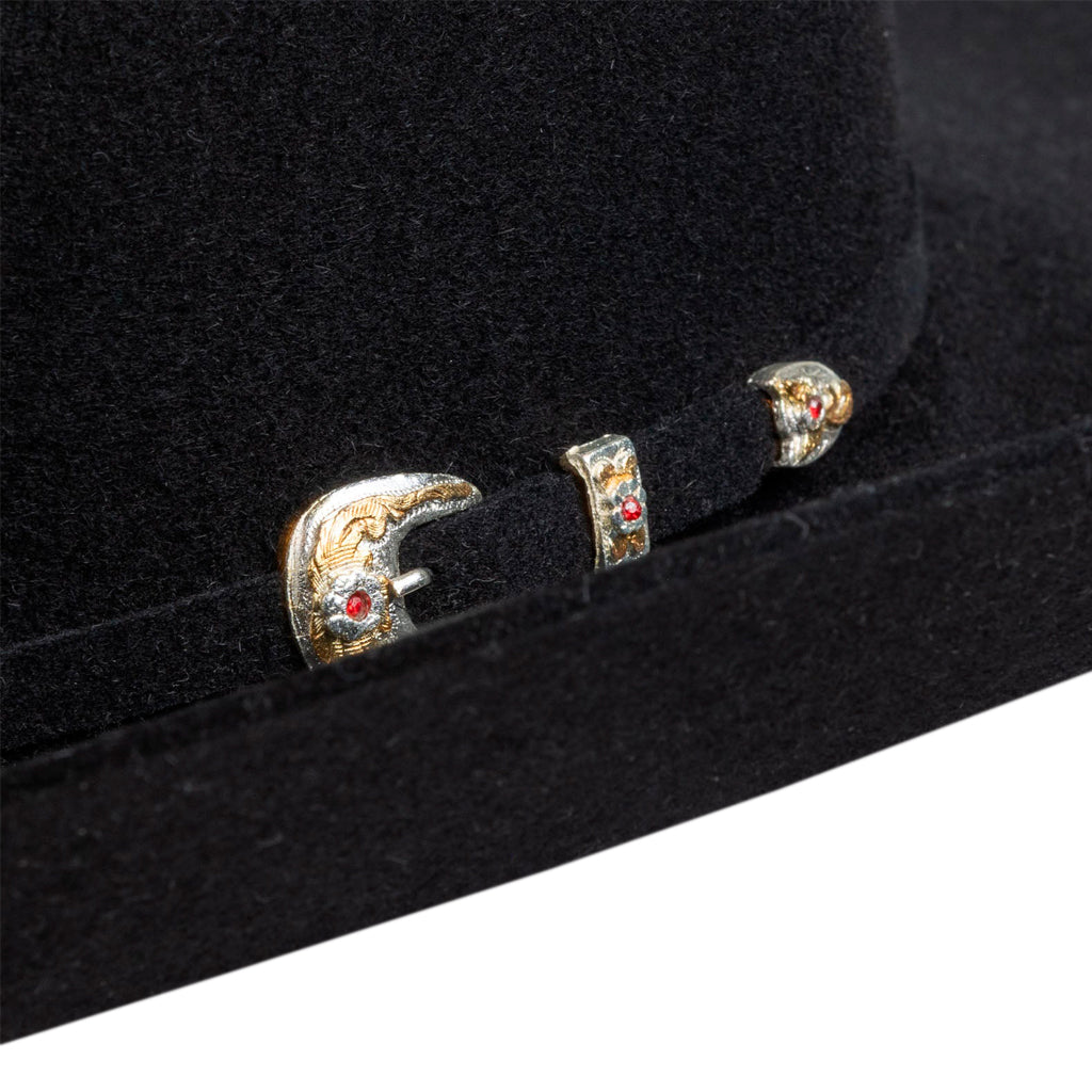 Fabricado con los mejores materiales, el sombrero vaquero 6X Real de Larry Mahan es conocido por su suave acabado y su ajuste excepcional. Adornado con un juego de hebillas de tres piezas y rubíes empaquetados individualmente, este sombrero premium es el complemento perfecto para tu próxima salida nocturna.