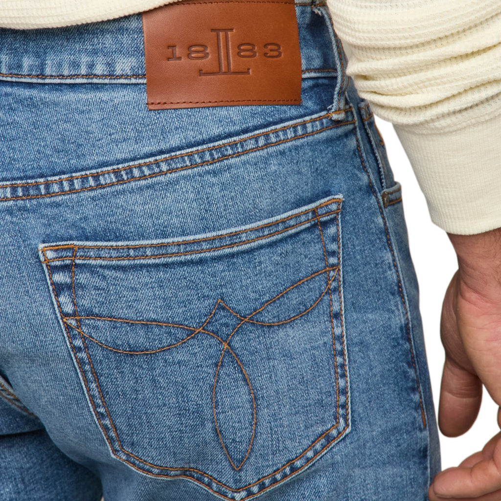 Jesse es un vaquero recto de tiro medio que se ajusta perfectamente a la cintura. Es ajustado en la cadera, pero con espacio en la entrepierna para una zancada óptima. La pernera es ligeramente más estrecha desde la rodilla hasta la abertura inferior. Cada lavado Jesse está confeccionado en denim turco o italiano. Con nuestro icónico medallón en la puntera en los bolsillos traseros y el logo Mirrored-L en el bolsillo para monedas, todo nos recuerda a nuestras legendarias botas