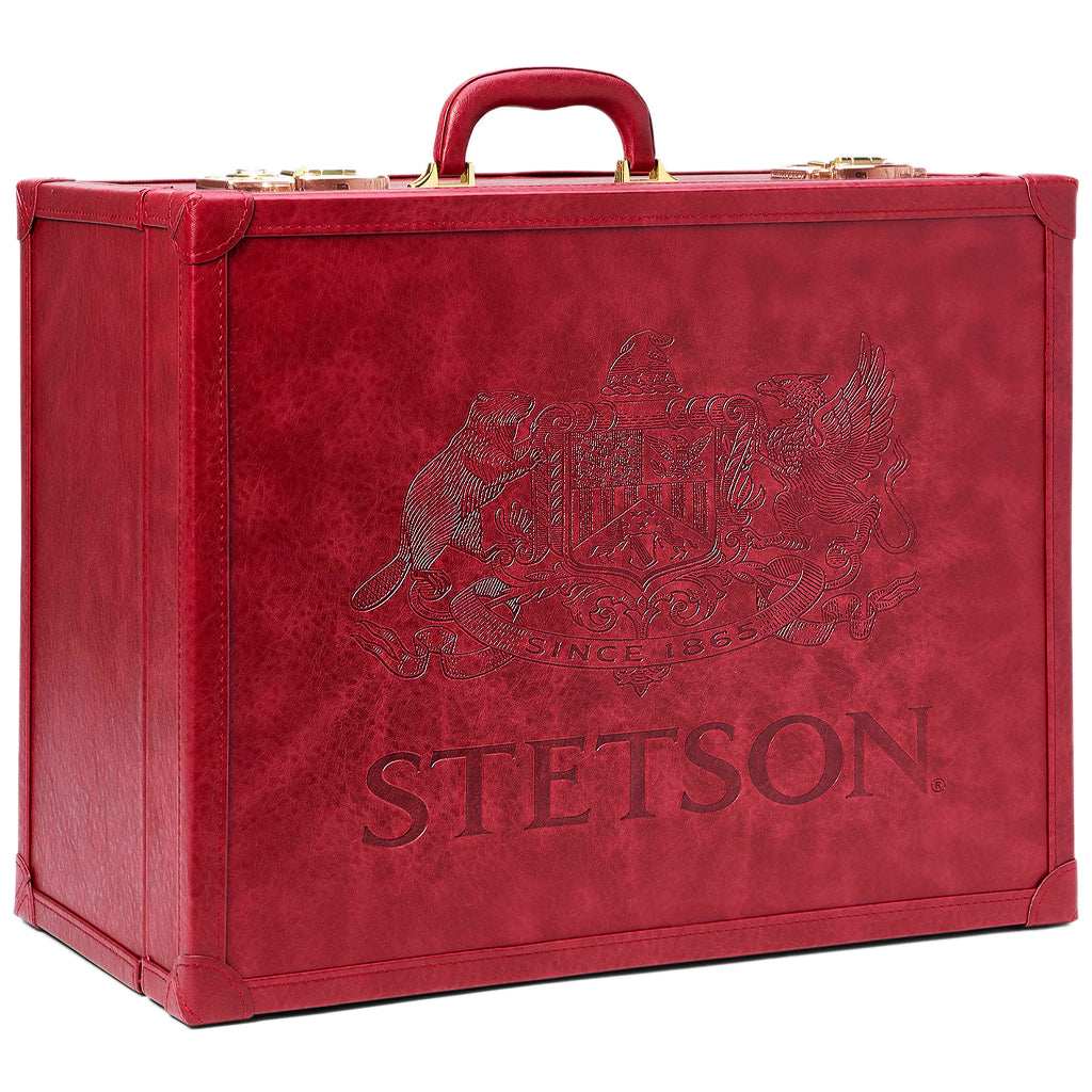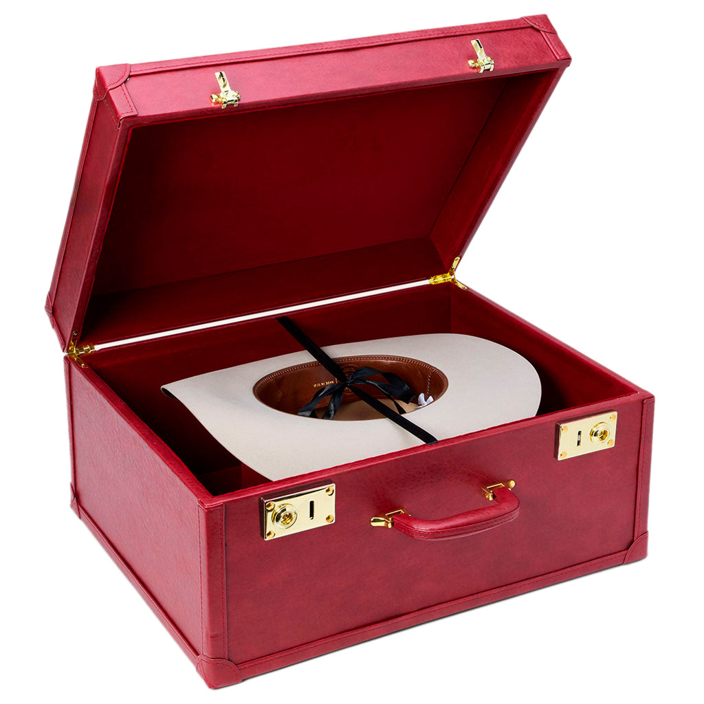 * Estuche para sombrero de cuero rojo grabado de primera calidad.