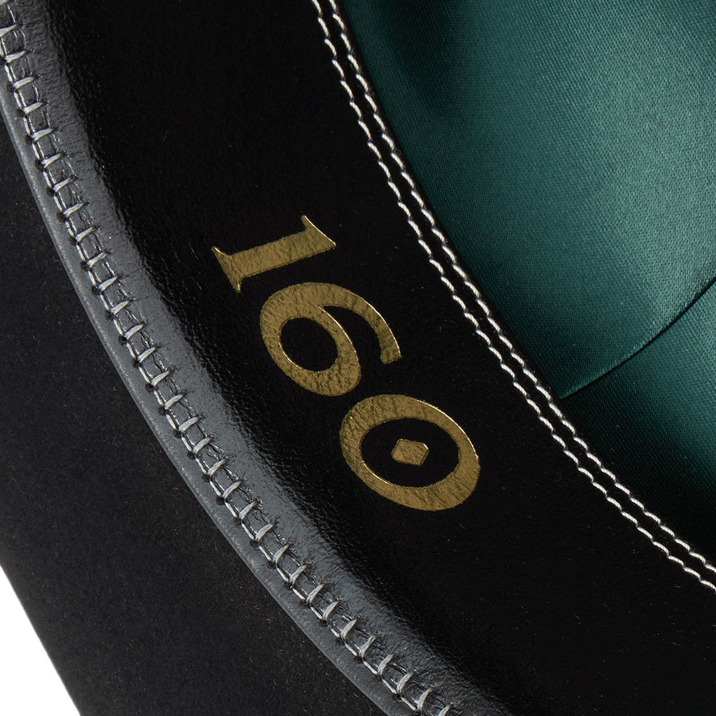 La Colección 160 Aniversario celebra la fundación de la empresa homónima por John B. Stetson en 1865 y encarna su compromiso original con la calidad y la artesanía. Al igual que cada sombrero de edición limitada de la colección, el Golden Eagle está marcado con un emblema de moneda de oro de cinco dólares, un guiño al precio pagado por el primer Stetson jamás vendido, por John B. Stetson a un cazador de toros que pasaba por las Montañas Rocosas de Colorado a principios de la década de 1860. En el caso del Golden Eagle, este emblema incluye un baño de oro genuino y el sombrero incluye mejoras premium adicionales, como un forro de satén esmeralda de lujo "160" y una banda de sudor de cuero ruano personalizada. Cada Golden Eagle incluye un certificado de autenticidad numerado 100X, un estuche de viaje rígido y una caja de cartón.