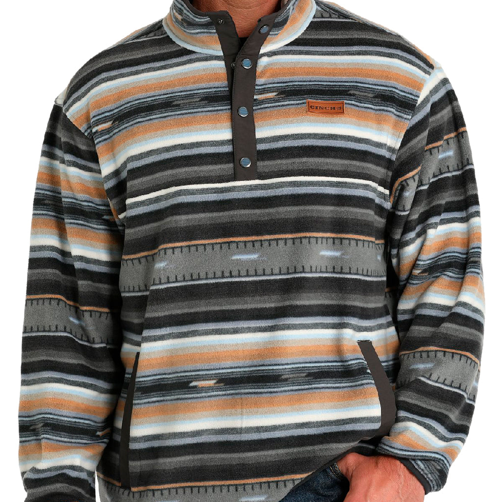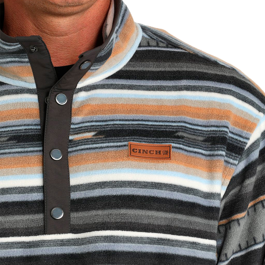 El otoño es la época ideal para añadir un acogedor jersey de polar a tu colección de prendas de abrigo. Este jersey de poliéster y elastano estampado en negro presenta un cuello alto con tapeta a presión, dos bolsillos para las manos y un parche de cuero con el logotipo de CINCH.