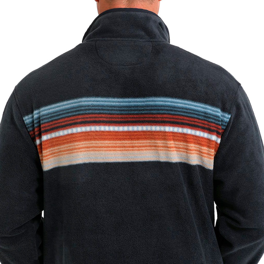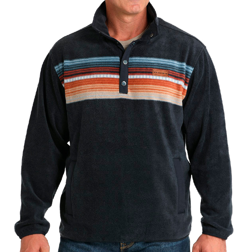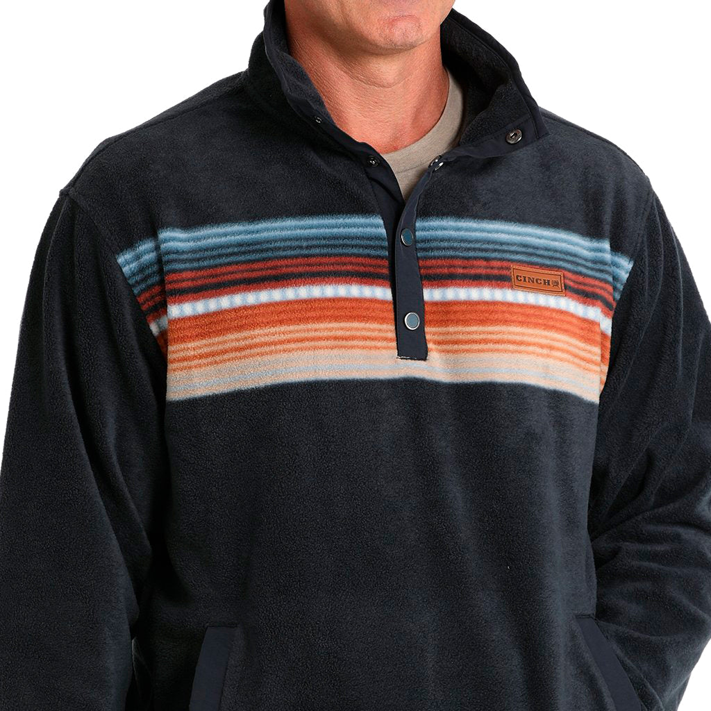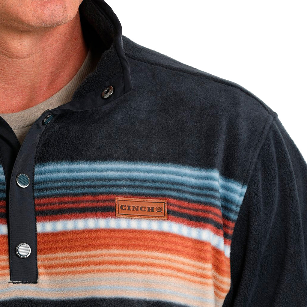 No hay nada que un cálido jersey de polar confeccionado por CINCH no pueda soportar. Enfréntese al frío del otoño con nuestro jersey de poliéster y elastano estampado en azul marino que presenta rayas multicolores, una tapeta con botones a presión, dos bolsillos para las manos y un parche de cuero con el logotipo.